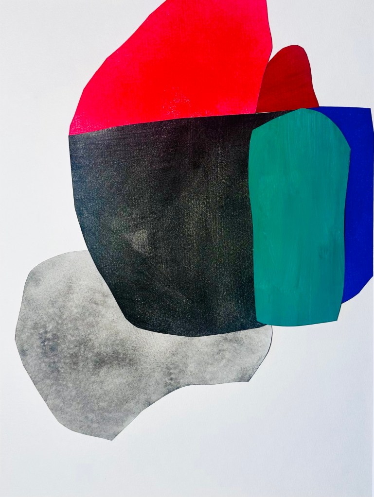 verkauft! LA CHAMBRE: Collage und Scherenschnitt, A3, sattblau, hellrot, rosa, grün