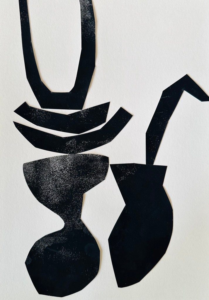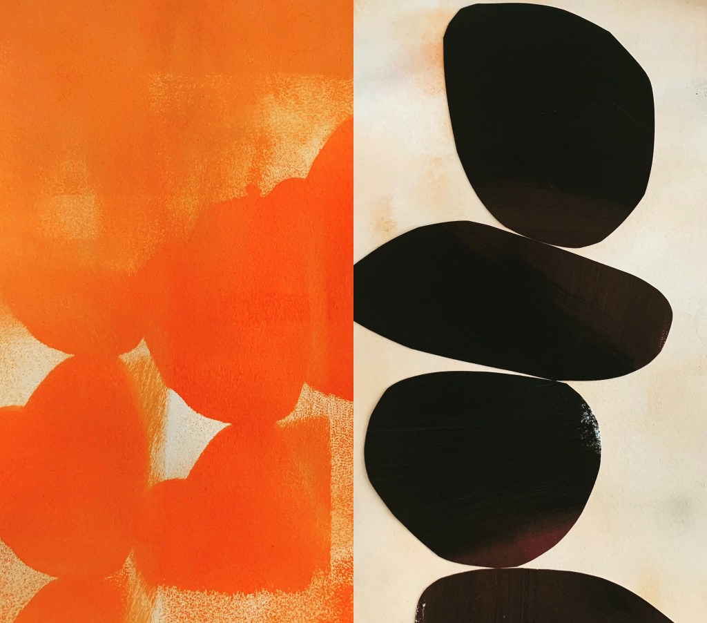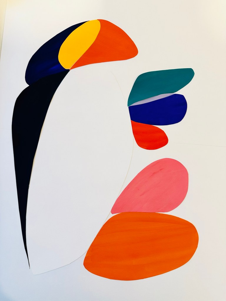 LOVIS: Collage A4: dunkelorange, violett, weiss, blauschwarz/ CHF 220.-