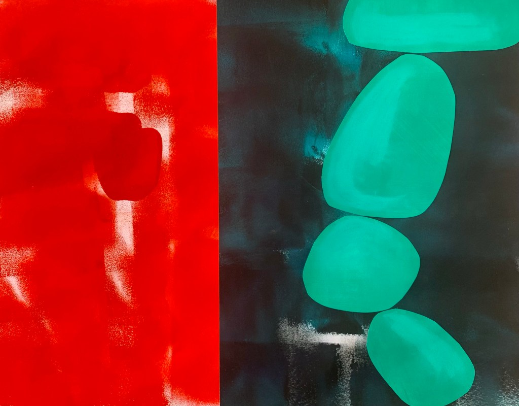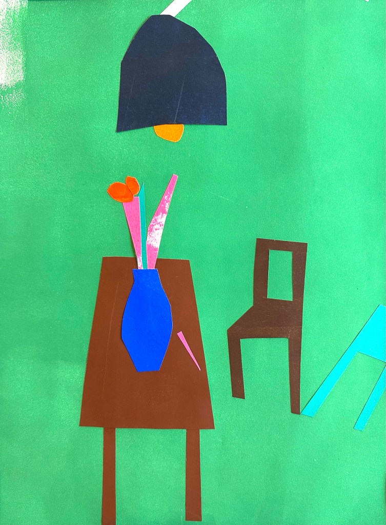 verkauft! LA CHAMBRE: Collage und Scherenschnitt, A3, sattblau, hellrot, rosa, grün
