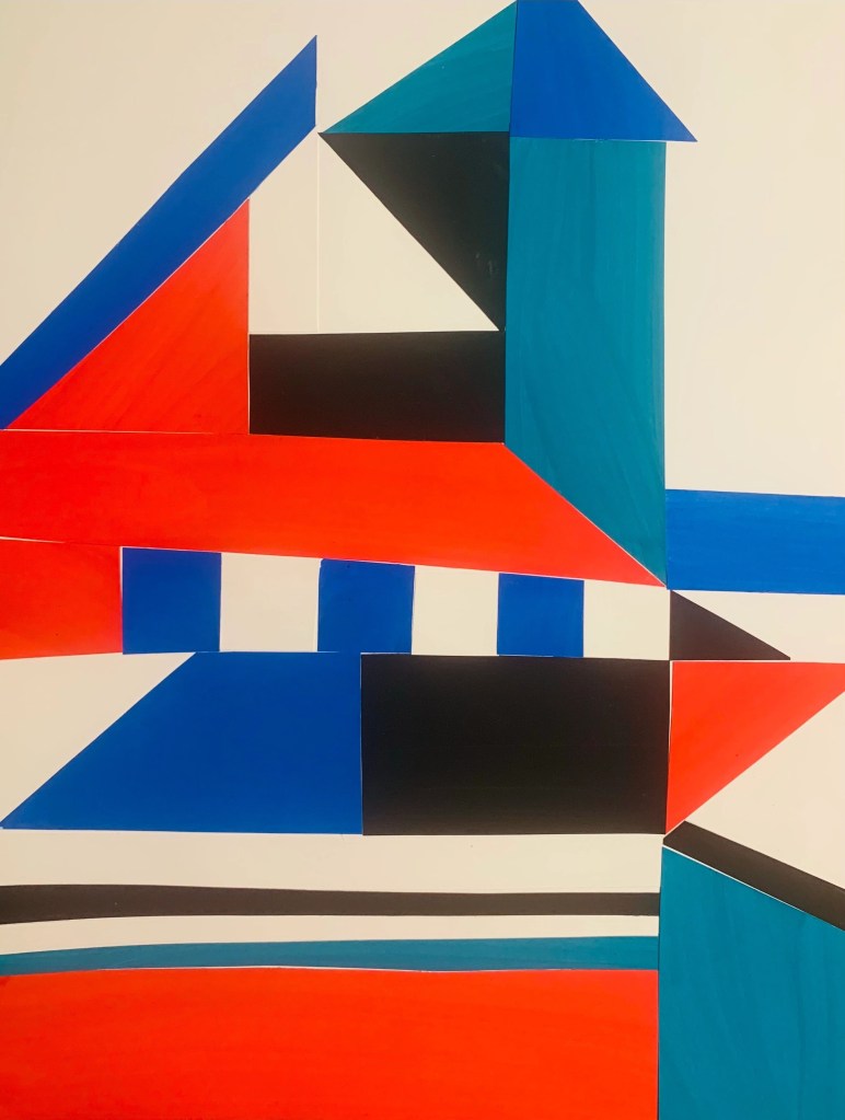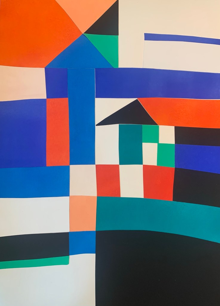 JHONNY: COLLAGE, A2, ORANGE/BLAU/ GRÜN/BORDEAUX/SCHWARZ/WEISS/CHF 780.-