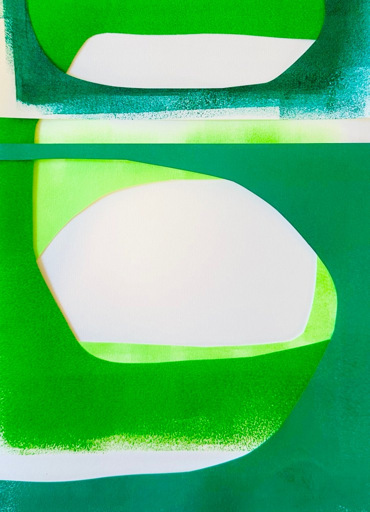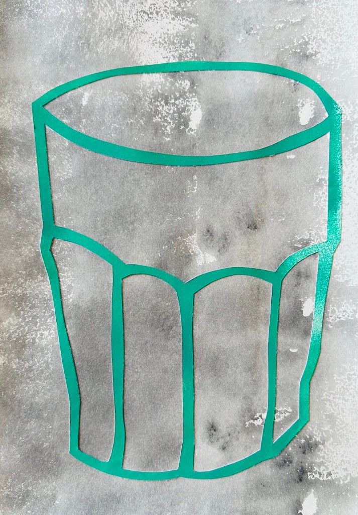verkauft! Glas grün: Scherenschnitt, A4, grau, grün