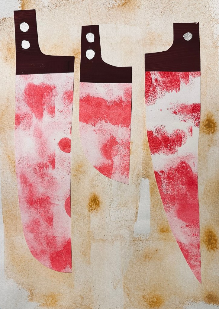 MIO: Collage, hellrot/ lila/ orange/ natur/schwarz, A3/CHF 480.-