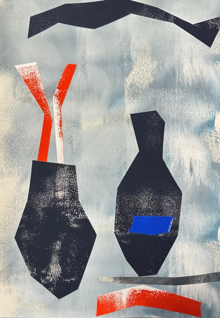 VERKAUFT! Vasen: Collage A4, graublau/blauschwarz/ sattblau/rot