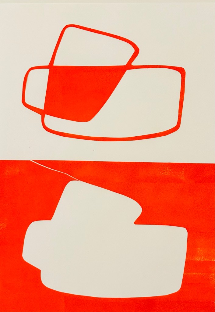 Scherenschnitt TEICH A3, hellrot auf offwhite/CHF 420.-