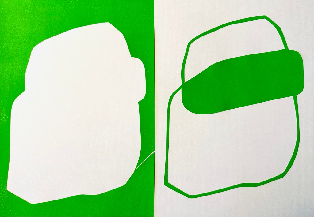 Scherenschnitt TEICH GRÜN: A3, sattgrün auf offwhite: chf 420.-