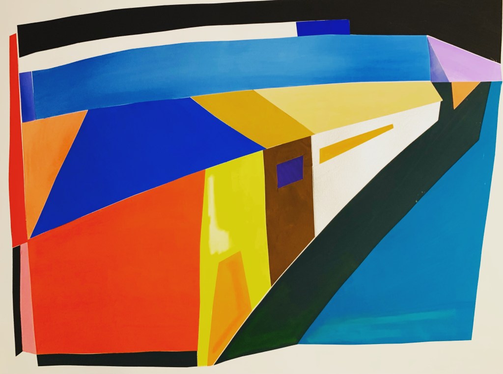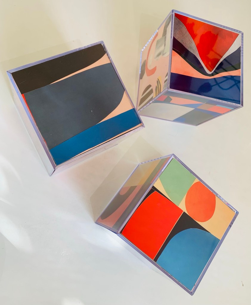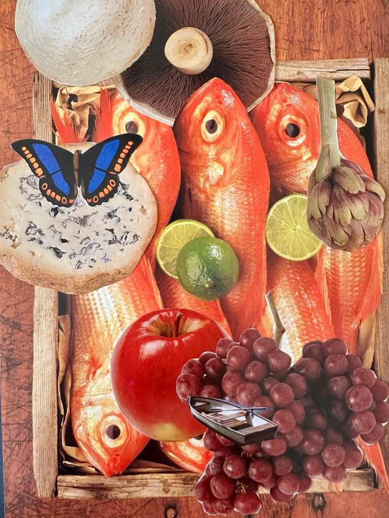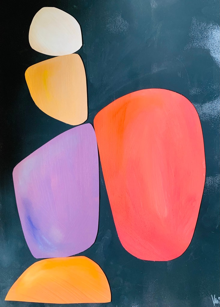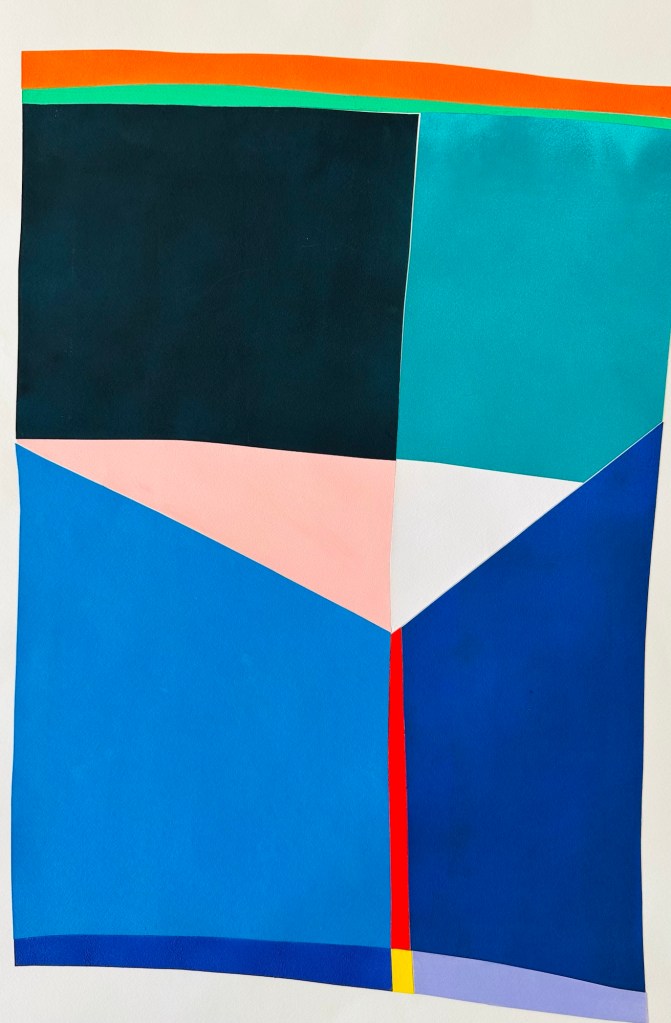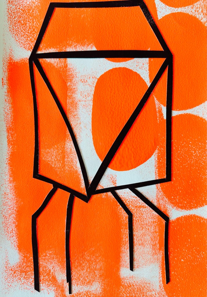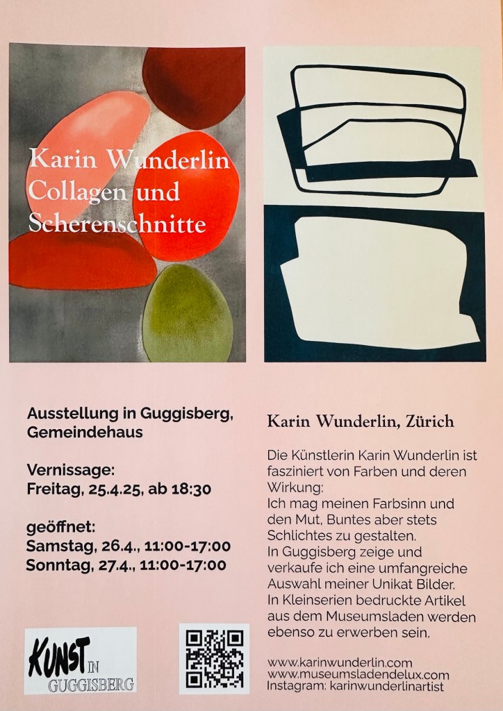 Ich bin fasziniert von Farben und deren Wirkung, mag meinen Farbsinn und den Mut, Buntes aber stets Schlichtes zu gestalten. Ich zeichne planlos, zerschneide, bemale spontan und setze die Teile wieder zusammen. So entstehen meine Collagen. Dadurch gibt es oft kleine Schönheitsfehler, denn ganz genau passt nichts mehr nebeneinander. Neuerdings ergänzen Scherenschnitte mein Collagensortiment: Filigran ausgeschnittene Bildskelette werden auf passenden Hintergrund gelegt. Jedes Bild ist ein Unikat, keine Drucke. Alle Bilder sind gerahmt, meist mit Masspasspartout.